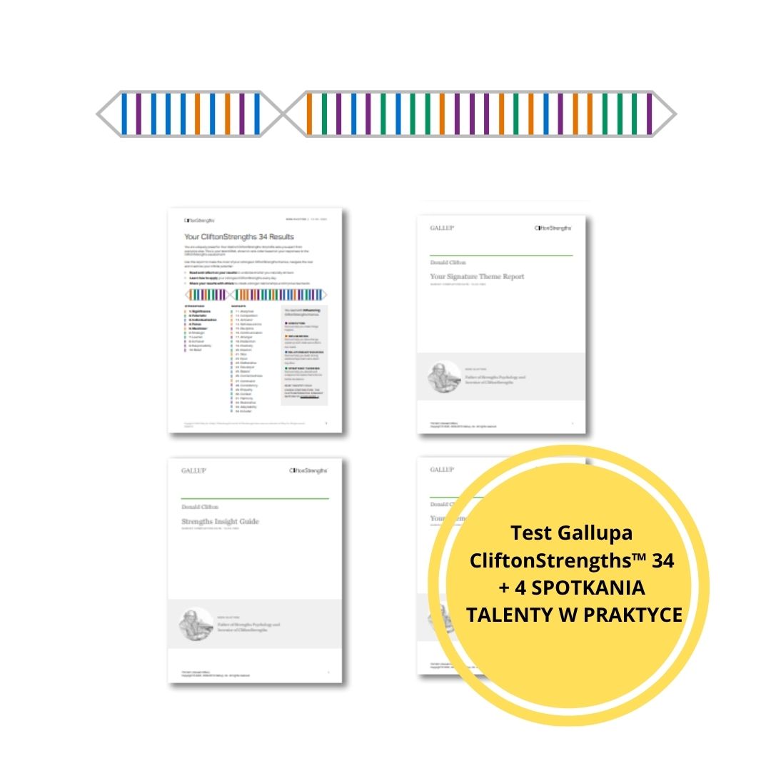 ✅ Raport CliftonStrengths 34 – pełny raport wszystkich talentów w języku polskim, spersonalizowane wskazówki i wyzwania dla top 5, szczegółowe opisy dla talentów top 1-5 i krótkie dla pozostałych w top 10, porady, jak pracować z talentami i podejście do rozwijania słabości.